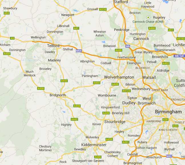 Based in the West Midlands M.B.Estates work mainly in the area shown on the map below.